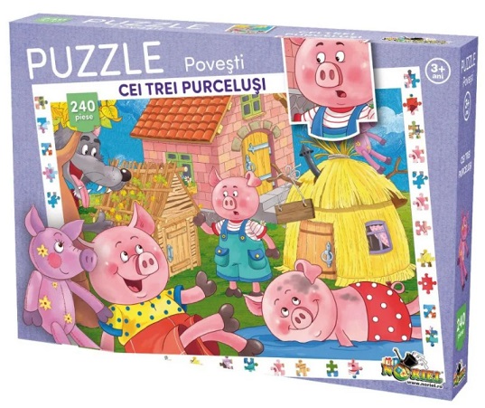Puzzle Colectia Povesti - Cei Trei Purcelusi 2017 Пазлы "Три поросенка" 2017 Эти головоломки из 240 предметов веселые и познавательные, полные жизни и цвета. Малыши учатся мыслить логически, искать решения, собирать и сочетать формы и цвета. «Были три поросенка, которые однажды решили каждый построить дом. Один был сделан из соломы, другой из палочек, а другой из кирпича »- так начинается история Трех поросят. Количество штук: 240 Рекомендуемый возраст: 3 года +