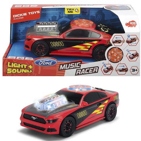 Dickie auto "Music Racer "23 cm Dickie auto "Музыкальный гонщик" свет и звук, 23 см Гоночный моторизированный автомобиль черно-красного цвета, оформленный в стиле Форд Мустанг, будет выделяться среди всех автомобилей вашего ребенка. Он не только ездит вперед и назад, но и умеет сигналить, проигрывать мелодии, а также вибрирует в такт музыки. Комплектация: машинка Размер машинки: 23 см Возраст: от 3 лет