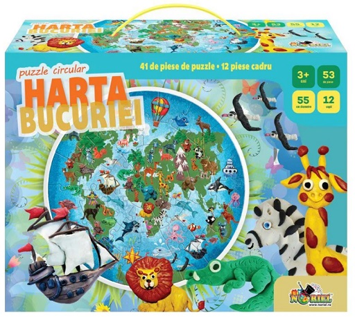 Puzzle circular - Harta bucuriei Noriel Круговой пазл "Карта радости" Составьте карту радости и узнайте, куда идут все дети, когда они хотят исследовать чудеса природы, узнавать о растениях и животных, путешествовать и играть! Соберите пазла, чтобы получить круговой рисунок с картой мира. В конце выровняйте по краю 12 фигур с 36 детскими мордашками, чтобы получилась веселая рамка! В комплекте 53 деталей Рекомендуемый возраст: 3 года +