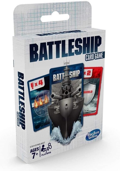 CLASSIC CARD GAMES BATTLESHIP Hasbro Kарточные игры "Battleship Card Game" В этой версии игры «Морской бой» игроки кладут свои карты координат перед собой и выбирают карты битвы в руке, чтобы сыграть либо карту колышка, либо карту силы. Это интересная стратегическая игра, потому что игроки используют свои карты, чтобы искать, поражать и топить вражеские корабли. Включает 80 игральных карт и правила игры. Количество игроков: 2 Рекомендуемый возраст: 7 лет +