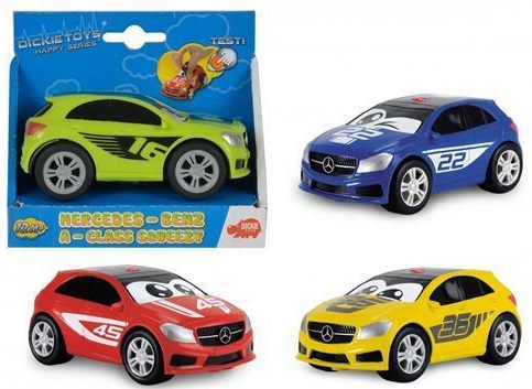 Dickie auto "Mercedes A-Class" 11 cm Dickie auto "Mercedes A-Class" 11 см (в ассорт) Игрушка выполнена из абсолютно безопасного высококачественного пластика дополнена наклейкой в виде веселых гзазок. С такой машинкой ребенок может играть как дома, так и на улице. Игра с машинкой помогает развивать мелкую моторику, цветовосприятие, координацию движений, а также являются хорошим средством для развлечения ребенка. Порадуйте своего малыша таким замечательным подарком. Размер: 11 см Возраст ребенка: От 1 года