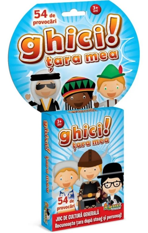 NORIEL GAMES - GHICI! TARA MEA Noriel Развивающая игра «Угадай! Мою страну» блокнот Угадай! Моя страна состоит из 27 иллюстрированных карточек (7,2 x 10 см), склеенных вместе и покрытых перфорированной карточкой, которая частично скрывает иллюстрации, оставляя видимыми две важные подсказки ... Идеально играть и учиться вместе: выберите одну из карт и тайно накройте ее перфорированной картой выше. Покажите малышу две подсказки, чтобы попытаться угадать, какую работу выполняет персонаж на картинке. Объясни и всему научи! Рекомендуемый возраст: 3 года +