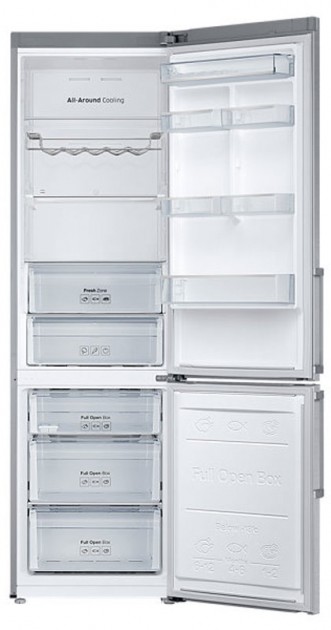 Холодильник Samsung RB37J5340SL/UA Холодильник комби, нижнее распололожение морозильника Размораживание - Full NoFrost Общий объем 367 л. Объем холодильной камеры 269 л Объем морозильной камеры 98 л. Класс энергопотребления А+ Хладагент : R600a Тип управления Электронное