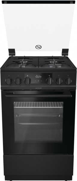 Gas\el cooker Gorenje K5341BF Made in EU Комбинированная плита Тип: Отдельностоящая Класс энергопотребления: A Материал панели управления: Крашеный металл Цвет: Черный Цвет ручки: Черный Материал дверцы: Стекло Полезный объем: 70 л