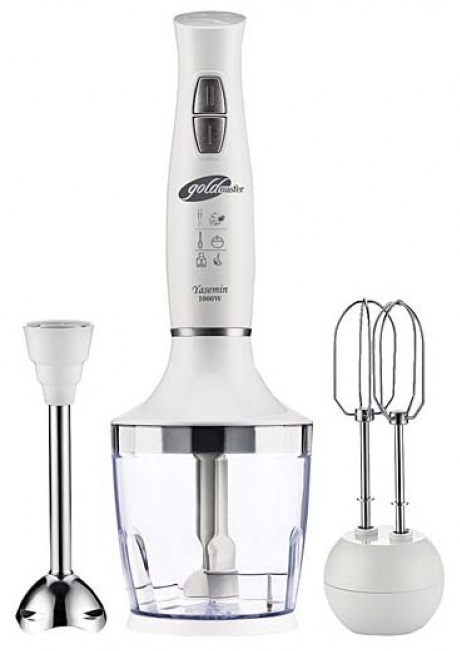 Blender stationar GoldMaster GM 7240 W Тип погружной Мощность 1000 Вт Измельчитель есть Объем чаши 0.8 л Материал чаши пластик Количество скоростей 1 Венчик для взбивания есть Материал корпуса пластик Материал погружной части нержавеющая сталь Цвет белый Страна производства Турция Производитель GoldMaster Tip de mana Putere 1000 W Tocator da Capacitate 0.8 l Material vas plastic Trepte de viteza 1 Tel pentru batut da Material carcasa plastic Material picior mixer inox Culoare alb tara producatoare Turcia Producator GoldMaster