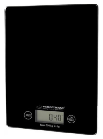 Kitchen Scale Esperanza LEMON EKS002K Black, Touch buttons, Maximum capacity: 5000g, Division: 1g, Four units of measure: g /lb/oz/kg, Tare Function, Overload indicator, Low battery indicator, Power: 1xCR2032 lithium battery Производитель:Esperanza Модель:Lemon EKS002K Предел взвешивания:5кг Точность измерения:1г Тип:Электронные Функция тарирования:Да Цвет:Черный Материал:Стекло Вес:515г Размеры:20 x 16 x 1.5см Источник питания:1 x CR2032 Producгtor:Esperanza Model:Lemon EKS002K Capacitate maximг:5kg Gradare:1g Afisaj:Digital Functie "Tara":Da Culoare:Negru Material:Sticlг Greutate:515g Dimensiuni:20 x 16 x 1.5cm Sursг alimentare: 1 x CR2032