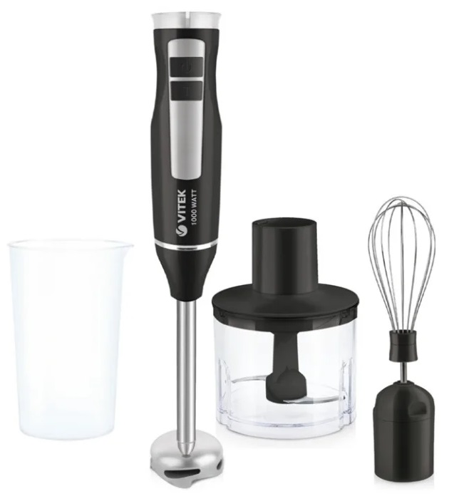 Блендер Vitek VT-8542 максимальная мощность: 1000 Вт механическое управление измельчитель, емкость 0.45 л мерный стакан, емкость 0.7 л корпус из пластика плавная регулировка скорости