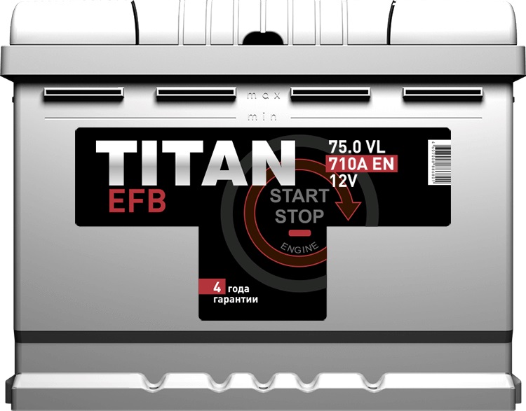 TITAN EFB 75.0 A/h 710 A 276 x 175 x 190 ПроизводительTITAN Напряжение12 V Емкость75 Ah Ток холодной прокрутки700 A Полярность0 (+справа, обратная) КреплениеB13 Высота190 mm Ширина175 mm Длина276 mmTITAN EFB 75.0 A/h 710 A 276 x 175 x 190