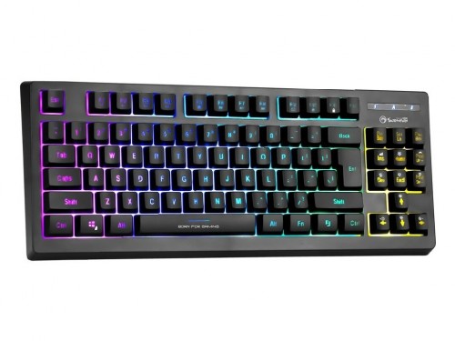 MARVO K659, Marvo Keyboard K659 Wired Gaming US LED Rainbow игровая клавиатура с подсветкой без цифровой блокировки компактные размеры с тонкой рамкой мембранные контакты, высокопрофильные клавиши поддержка 25 клавиш с защитой от ореолов радужная подсветка с 3 смешанными цветами мультимедийные функции функция блокировки клавиш Windows прочная и качественная конструкция Количество клавиш: 87 Контакты: мембранные Ход клавиш: 3,6 ± 0,3 мм Надежность клавиш: 10 миллионов нажатий Рабочее усилие: 50 ± 7 г Освещение: Радуга Подключение: USB 2.0 (проводной, 1,7 м) Совместимость: Windows (7 или новее)