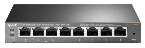 8-Port Gigabit Desktop PoE Easy Smart Switch, 8 Gigabit RJ45 ports including 4 PoE ports, 55W PoE Power supply, MTU/Port/Tag-based VLAN, QoS, IGMP Snooping, steel case