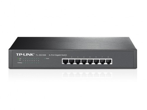 TP-LINK TL-SG1008 8-port Gigabit Switch, 8 10/100/1000M RJ45 ports, 1U 13-inch rack-mountable steel case