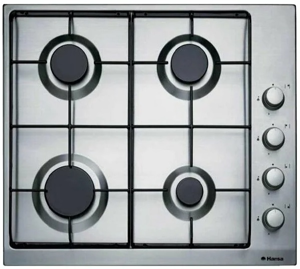 Варочная панель HANSA BHGI63100018 нержавейка поверхность из нержавеющей стали 4 конфорки независимая установка электроподжиг газ-контроль поворотные переключатели ШхГ: 60х50 смВарочная панель HANSA BHGI63100018 нержавейка