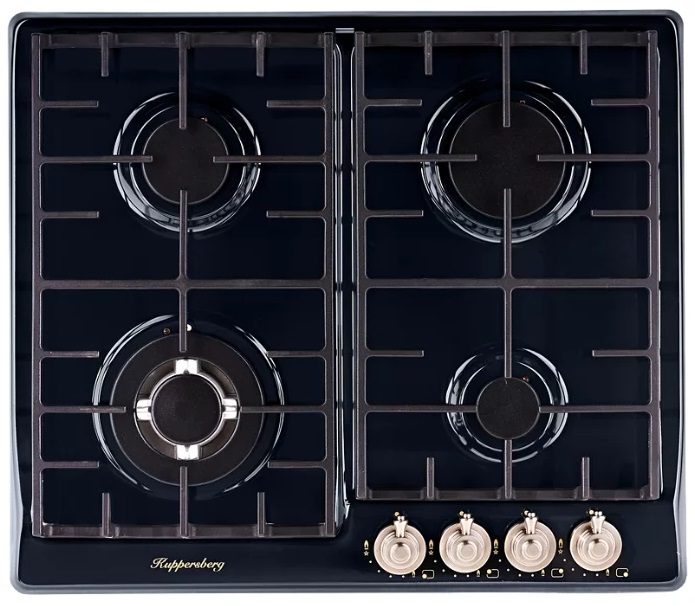 Варочная панель KUPPERSBERG FV6TGRZ ANT черный эмалированная поверхность 4 конфорки независимая установка электроподжиг газ-контроль чугунные решетки поворотные переключатели ШхГ: 58х50 см