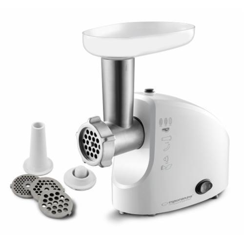 Meat Grinder Esperanza PATE EKM021 600W, stainless steel knife for long time use, metal spiral drive, 3 discs with different diameter holes (2,7mm, 4mm, 8mm), nozzle for making sausages, nozzle for making kebbe, white