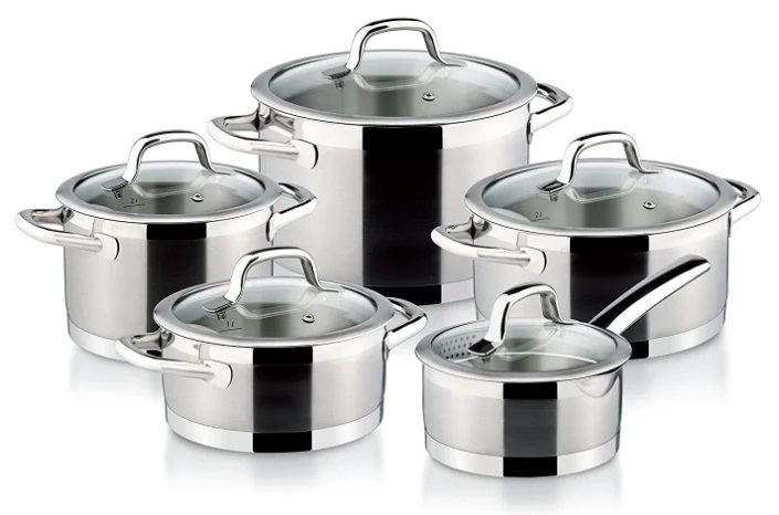 Set cratite inox Tescoma President, 10 piese 4 кастрюли: 5.5 л, 4 л, 3 л, 2 л; ковш: 1.5 л; 5 крышек материал: сталь подходит для индукционных плит особенности: мытье в посудомоечной машине, крышка в комплекте