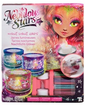 Night Light Jars Сказочные звезды осветят ночью твои мечты магическим сиянием! Сделай свою комнату блестящей, как звездное небо, с помощью космических ночных фонариков. В этом тебе поможет набор для творчества "Волшебное мерцание". Прояви свою фантазию и создай космические фонарики с помощью 3-х пластиковых баночек, укрась их блестками, наклейками, стразами, лентами и зажги беспламенные свечи. Галактика Nebulous Stars — это сказочный мир творчества и волшебства! В наборе: - 3 маленьких пластиковых баночки; - 3 беспламенные свечи; - 5 тюбиков блестящей пудры; - 100+ стикеров; - 28 наклеек со стразами; - Клей и кисть; - Наклейки на маски и пластиковые листы; - 3 сверкающих ленты; - Двусторонний скотч; - Инструкции по цвету; - Брошюра с рассказом Хазелии; Возраст: от 7 лет. Производитель: Канада (Nebulous Stars).