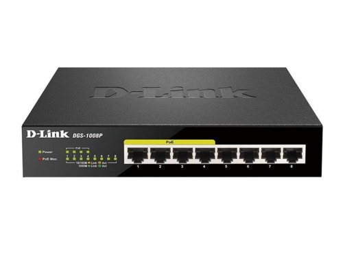 .8-port 10/100/1000Mbps POE, D-Link DGS-1008P/E1A