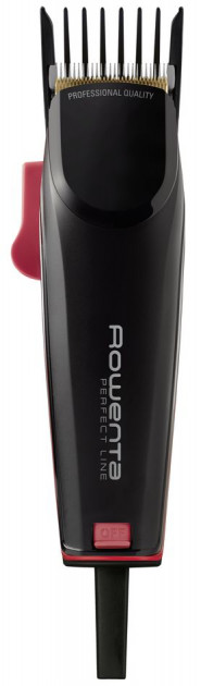 Hair Cutter ROWENTA TN1350F0, mains operation, 19 cutting lengths (0.6-25mm), cutting width 42mm, 6x comb attachment, black red Источник питания : Сеть Количество насадок : 6 Материал ножа : Нержавеющая сталь Мощность двигателя : 4 Вт Дополнительные аксессуары : Масло, щётка, 6 насадок, чехол Вес : 510 г Ширина ножа : 45 мм Sursa de alimentare : Re?ea Numar piepteni : 6 Material lame : O?el inoxidabil Puterea motorului : 4 W Accesorii incluse : Ulei, perie, 6 piepteni, case Greutate : 510 g La?ime cu?it : 45 mm