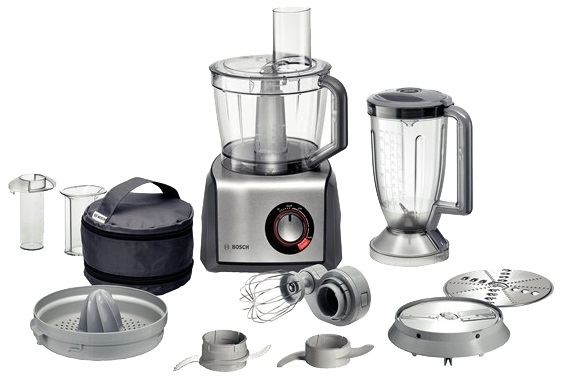 кухонный комбайн BOSCH MCM68840 мощность: 1250 Вт объем чаши: 3.9 л блендер, терка, насадка для взбивания, универсальный нож соковыжималка для цитрусовых корпус из пластика компактное хранение насадок