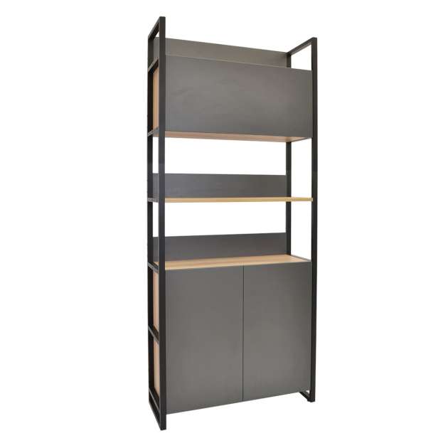 Material cadru: metal vopsit electrostatic Material finisaj: PAL melaminat cantuit 18 mm Picioare: ajustabile pe inaltime Usi dotate cu balamale de inchidere lenta. Dimensiuni: Latime: 90 cm Adancime: 34 cm Inaltime: 210 cm Inaltime intre polite: 34 cm Inaltime dulap superior: 34 cm Inaltime dulap inferior: 84 cm Produsul se livreaza montat si nu necesita asamblare.