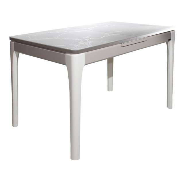 Stil: modern Material cadru/picioare: picioare din lemn vopsit, cadru din MDF vopsit Material blat: MDF vopsit, acoperit cu suprafata din sticla securizata(tratata termic) de 5mm Dimensiuni: Lungime: 120 cm Lungime cu extensie: 150 cm Latime: 75 cm Inaltime: 75 cm
