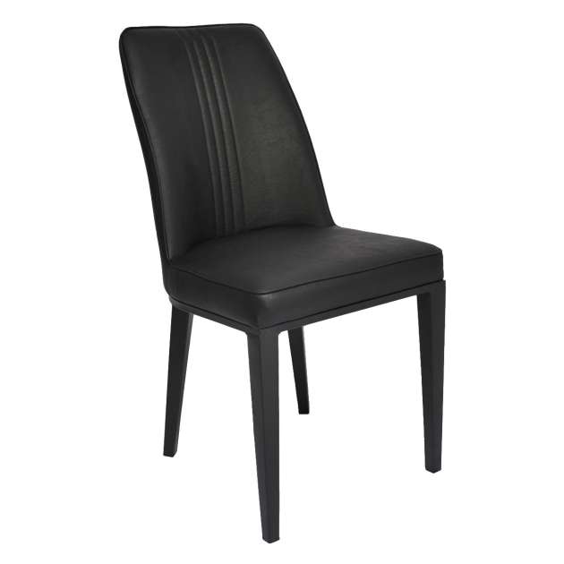 Stil: modern Cadru: metal vopsit in imitatie lemn prin tehnologia transprint Tapiterie: piele artificiala Dimensiuni: Latime: 47 cm Adancime: 56 cm Inaltime: 93 cm Inaltime pana la sezut: 47 cm Inaltime spatar: 48 cm Latime sezut: 47 cm Adancime sezut: 44 cm