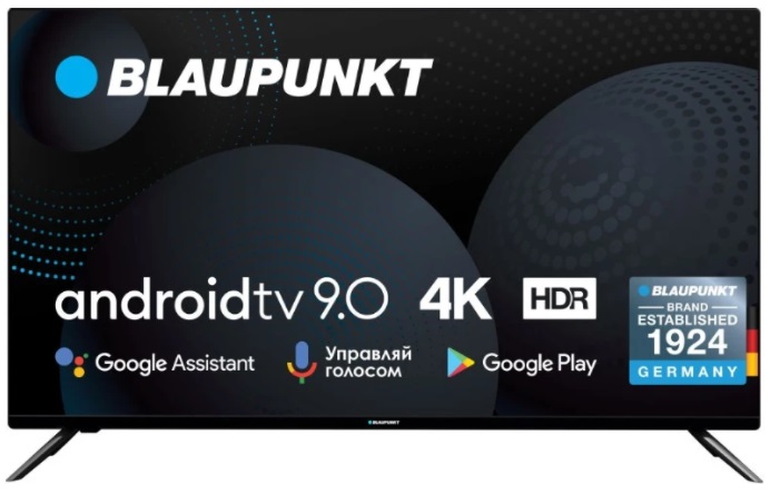 Телевизор 55" LED Blaupunkt 55UN265, Black (3840x2160 UHD, SMART TV, 60 Hz, DVB-T/T2/C/S2) (55", Black, 3840x2160 UHD, 60Hz, SMART TV (Android 9.0 Pie), 2 HDMI, 2 USB, DVB-T/T2/C/S2, CI+ slot, LAN, OSD Language: ENG, RO, RU, Speakers 2x8W, Voice Control and Диагональ экрана? 55 " Разрешение (4K) 3840x2160 Расширенный динамический диапазон (HDR) 10 Яркость 330 кд/м2 Контраст 3000:1 Угол обзора 160, 150 ° Время отклика 8 мс Цифровое ТВ DVB-T2, DVB-C Smart TV есть Тип операционной системы Android Bluetooth есть Wi-Fi есть Wi-Fi Direct\Miracast есть Мультимедийный пульт есть Управление голосом есть Управление жестами есть Композитный вход 1 HDMI 4 USB 3 Ethernet (LAN) 1 Мощность звука 2x10 Вт Виртуальные ассистенты Google Assistant Цвет чёрный Размеры настенного крепления VESA 200x200 мм Размеры без подставки 1238x714x63 мм Размеры с подставкой 1238x776x260 мм Вес с подставкой 13.4 кг Производитель Blaupunkt