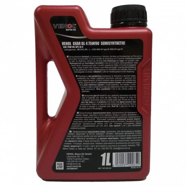Масло Venol 75w90 1л semisynthetic (GL-4) Вязкость по SAE 75W-90 Емкость 1 л Тип основы масла Синтетическое Спецификации API GL-4 Страна регистрации бренда Германия Страна-производитель товара Германия