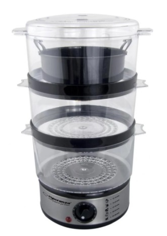 Ap. de gatit cu aburi Esparanza Steam Volcano EKG009 Количество ярусов 3 Объем паровых корзин 7.5 л Контейнер для риса есть Подставка для яиц нет Тип управления механический Мощность 400 Вт Таймер есть Материал корпуса металл Цвет чёрный, стальной Вес 1.2 кг Особенности и функции регулируемая температура, поддержание температуры, автоматическое отключение Производитель Esperanza