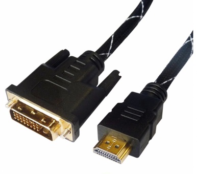 Cable HDMI-DVI - 2m - Brackton "Professional" DHD-BKR-0200.BS, 2 m, DVI-D cable 24+1 to HDMI 19pin, m/m, triple-shielded, better pastic plug, dual-link, nylon sleeve black/silver, golden contacts, 2 ferrits, dust caps