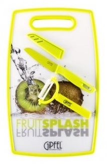 Set de cutite Gipfel GP-3243 + placa p/u tocat Материал пластик Цвет жёлтый, белый Размеры (Д?Ш) 37x23x1.2 см Вес 720 г Дополнительные спецификации нож, овощечистка в комплекте Производитель Gipfel