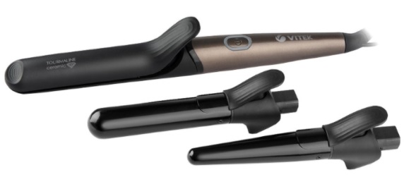 Indreptator p/par Vitek VT-8433 тип щипцов: мультистайлер покрытие: турмалиновое насадка-щипцы для завивки, насадка для выпрямления волос мощность: 40 Вт индикация включения