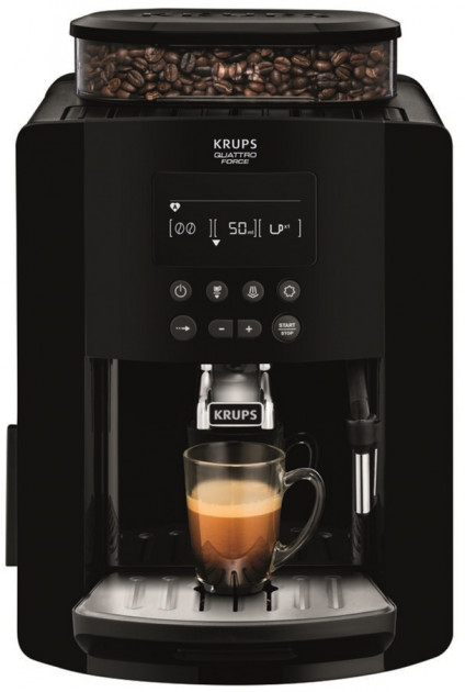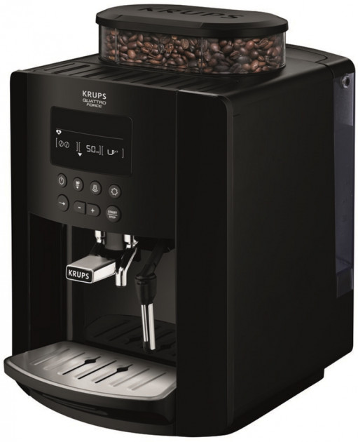 Coffee Machine Krups EA817010, Power output 1450W, water tank capacity 1.7l, suitable for coffee beans and coffee powder, LED display, metal grinders, pump pressure 15 bar, black