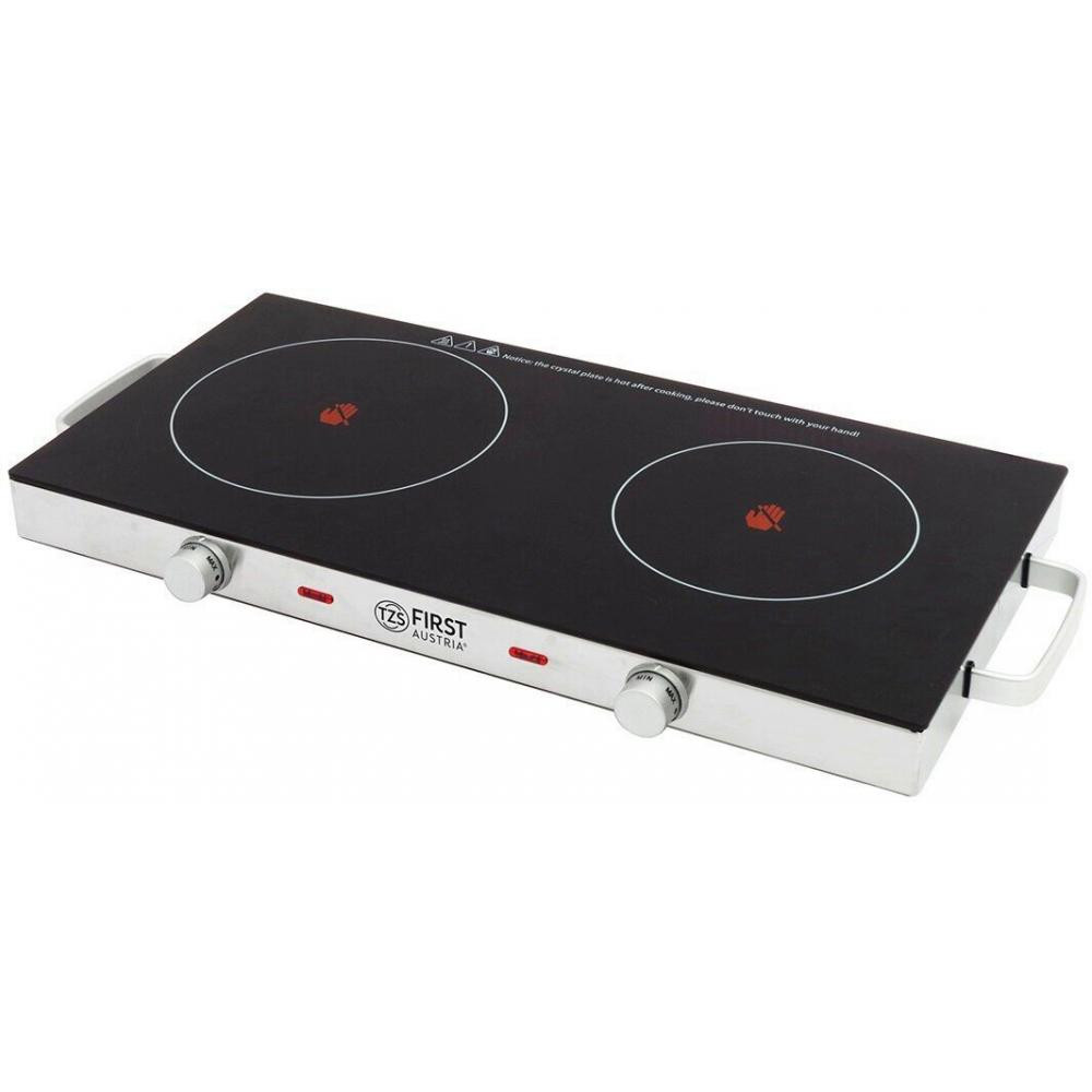 FIRST 005096-7 Производитель: First Тип: Настольная плита Тип варочной поверхности: электрическая цвет: нержавеющая сталь / черный Количество электрических конфорок: 2