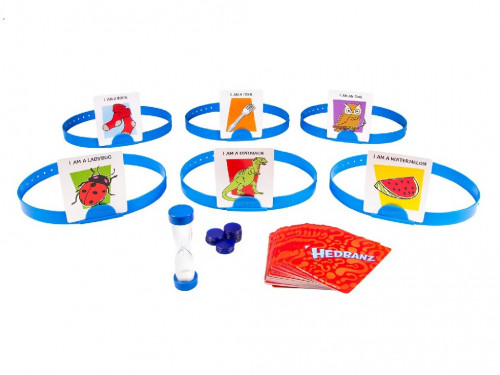Joc Hedbenz 6059496 Это так просто: выбирай, ставь и играй! Выбери понравившуюся повязку на голову и возьми одну карточку с картинкой, не глядя на рисунок. Надень повязку и помести карточку в повязку так, чтобы изображение было обращено ко всем игрокам. Затем играйте, задавая вопросы, на которые нужен ответ «да» и «нет», пытаясь угадать, что нарисовано на твоей карточке! Это игра на время, чтобы выиграть, угадай 3 картинки и получи три победных жетона.