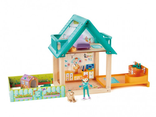 HAPE-FURRY FRIEND VET SET E3408A Эта забавная, компактная и удобная в переноске ветеринарная хирургия включает в себя собачью будку, кошачью будку и все аксессуары, необходимые для ухода за вашими питомцами и поддержания их хорошего самочувствия!