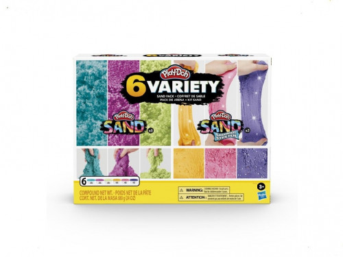PD SAND VARIETY PACK F0103 Hasbro Play-Doh F0103 Набор Кинетический песок Проявите творческий подход с Play-Doh Sand и придайте ему различные формы или просто манипулируйте его руками и наблюдайте за плавными завораживающими движениями. Play-Doh Shimmer Stretch еще больше расширяет воображение благодаря удивительной эластичности и множеству мерцающих блесток!