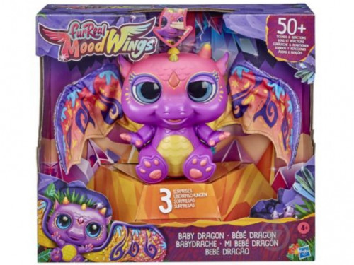 FRR BABY DRAGON F0633 Фантастическая игрушка "Малыш Дракон" от furReal таит так много сюрпризов! Сначала малышка просыпается немного застенчивой, а цвет ее глаз становится оранжевым. Чтобы питомец стал дружелюбнее, просто нежно погладьте его по носу. Меняющийся цвет глаз и животика дракончика покажет ребенку, в каком настроении малышка. Когда она спит, глаза очаровательной игрушки становятся голубыми; зелеными - когда пришло время подкрепиться. Глаза малышки покраснели? Значит кто-то немного капризничает! Желтые глаза - признак счастливого настроения питомца. Накормите ее из бутылочки, успокойте ее соской, покачивайте малышку на руках. Играйте с дракончиком, вращая его в воздухе, чтобы услышать различные забавные звуки.