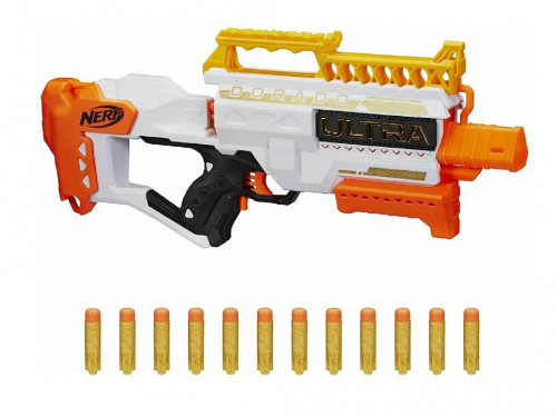 NER ULTRA DORADO Hasbro Nerf Blaster "Ultra Dorado" Blasterul Nerf Ultra Dorado include 12 sageti Nerf Ultra de culoare aurie editie speciala. Acest blaster motorizat, cu 6 sageti, lanseaza sageti rapid. Porniti motorul si apasati pe declansator pentru a lansa 1 sageti la un moment dat. Incarcarea rapidai va permite sa reincarcati rapid - cilindrul cu 6 sageti, astfel incat sa puteti vedea cate sageti raman si sa stiti cand sa reincarcati. Include stocare la bord cu 6 darts. Blaster-urile Nerf Ultra iti duc jocul la nivelul urmator cu designul si performanta lor avansata, care ofera distanta, precizie si viteza extrema. Blasterele Nerf Ultra functioneaza numai cu sagetile Nerf Ultra. Baterii necesare: 6xAA 1,5 V (nu sunt incluse). Varsta recomandata: 8 ani + Hasbro Бластер Nerf "Ultra Dorado" Бластер включает в себя 12 специальных золотых стрел Nerf Ultra. Этот моторизованный бластер с 6 стрелами быстро выпускает стрелы. Запустите двигатель и нажмите кнопку спуска затвора, чтобы запустить по одной стрелке за раз. Быстрая зарядка позволяет быстро перезаряжать - цилиндр с 6 стрелками, поэтому вы можете видеть, сколько стрелок осталось, и знать, когда перезарядить. Включает бортовое хранилище на 6 дротиков. Бластеры Nerf Ultra выводят вашу игру на новый уровень благодаря передовому дизайну и производительности, которые обеспечивают невероятное расстояние, точность и скорость. Бластеры Nerf Ultra работают только со стрелами Nerf Ultra. Необходимые батареи: 6 AA 1,5 В (не входят в комплект). Рекомендуемый возраст: 8 лет +