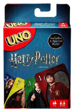 UNO "HARRY POTTER" Joc de car?i UNO "Harry Potter" Seria Uno prezinta acum un nou joc tematic Harry Potter! Impreuna cu celebrul trio, ve?i folosi ac?iuni unice din car?i noi, jucand tabla clasica de car?i! Palaria de Sortare a devenit o harta speciala a setului tematic, care va distribui jucatorii catre faculta?i. Daca juca?i o astfel de carte din mana, atunci urmatorul adversar in sensul acelor de ceasornic va trebui sa traga car?i din pachet pana cand va primi o carte Gryffindor! Numarul jucatorilor: 2 - 10 Con?inutul pachetului: 112 car?i, instruc?iuni Varsta recomandata: 7 ani + Карточная игра UNO "Гарри Поттер" В серии Уно появилась тематическая игра с персонажами из Гарри Поттера! Вместе со знаменитым трио вы будете использовать уникальные действия из новых карт, играя в классическую карточную настолку! Специальной картой тематического набора стала «Сортировочная шляпа», которая распределит игроков по факультетам. Если вы разыграете такую карту с руки, то следующий противник по часовой стрелке должен будет брать карты с колоды до тех пор, пока ему не попадется карта Гриффиндора! Количество игроков: 2-10 игроков Комплектация: 112 карт, инструкция Рекомендуемый возраст: 7 лет +