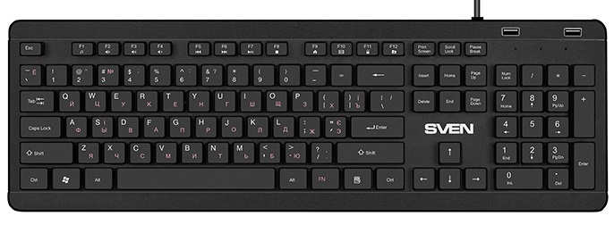 Keyboard SVEN KB-E5700H, Slim, Low-pro?le keys, Island-style, Fn key, 2xUSB ports, Black, USB