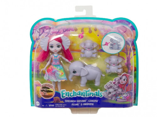 Enchantimals Esmeralda Elefant si Familia GTM30 Enchantimals Papu?a "Esmeralda Elephant cu familia" Face?i cuno?tin?a cu adorabila familie de elefan?i Enchantimals! Papu?a Esmeralda este imbracata intr-o ?inuta colorata, cu imprimeu luminos ?i pantofi roz. Ii place sa petreaca timpul cu elefantul Graceful ?i cei doi elefan?i dragu?i ai ei. Fiecare figurina de elefant are un design unic. Copiilor le va placea sa joace scene amuzante cu Esmeralda ?i prietenii ei. Colecteaza toate seturile de papu?i ?i figurine Enchantimals ?i scrie-?i propriul basm al prieteniei ?i ingrijirii! Con?inut: 1 papu?a, 3 figurine, accesoriu Pentru copii de la 4 ani Enchantimals Кукла "Эсмеральда Слонни с семьей" Встречайте очаровательную семью слоников Enchantimals! Кукла Эсмеральда одета в разноцветный наряд с ярким принтом и розовые туфли. Она очень любит проводить время со слонихой Грейсфул и ее двумя милыми слонятами. Каждая фигурка слона отличается уникальным дизайном. Детям понравится разыгрывать веселые сценки с Эсмеральдой и ее друзьями-зверюшками! Соберите все наборы Enchantimals с куклами и фигурками и напишите свою сказку о дружбе и заботе! В комплекте: 1 кукла, 3 фигурки, аксессуар Для детей от 4-х лет