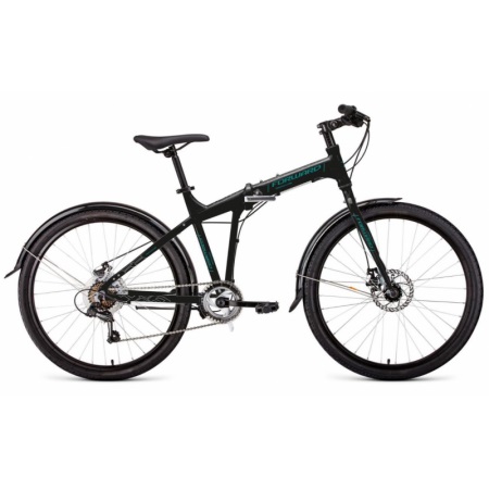 Велосипед FORWARD TRACER 26 2.0 disc (26" 7 ск. рост 19" скл.) 2020-2021, черный/бирюзовый