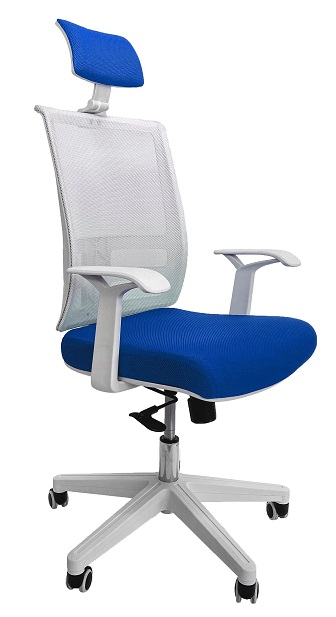 Кресло Alex blue Сидение данной модели выполнено из мембранной ткани, а спинка из белой сетки, которая обеспечивает повышенную циркуляцию воздуха, что в свою очередь повышает комфорт использования в любую погоду. Для крестовины и подлокотников в качестве материала был выбран белый пластик. Особенностью данной модели является механизм качания TILT, который позволяет изменять и фиксировать наклон спинки и сидения, позволяя кресло максимально корректно подстраиваться под задачи пользователя. Высота кресла изменяется с помощью газлифта. Установлены прорезиненные ролики.