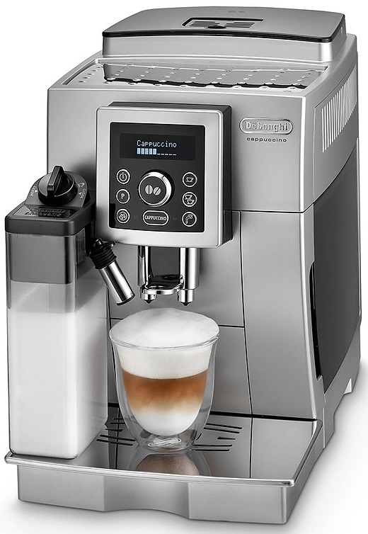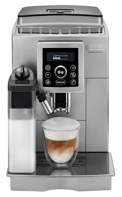 Кофемашина DeLonghi ECAM23.460S Silver Тип Кофемашина Производитель DeLonghi Модель ECAM 23.460.S Цвет Silver Используемый кофе зерновой, молотый Порций за 1 раз 2 Резервуар для воды 1.7 Л Емкость кофемолки 250 г Потребляемая мощность 1.45 кВт Давление 15 бар Материал пластик/металл Предустановленные программы Американо, Эспрессо, Капучино Регулировки есть Кофемолка есть Самоочистка есть Резервуар для молока есть Фильтр для воды есть Дисплей есть Габариты (ВхШхГ) 34 x 23,8 x 43 см Вес 9 Кг