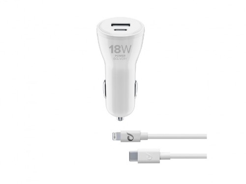 Car Charger Cellular,Dual Kit 18W+12W + Type-C-C to Lightning Cable, White