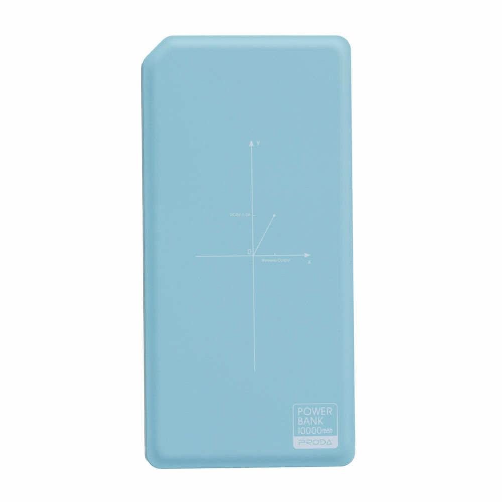 Wireless Power Bank Proda Chicon 10000mAh, Blue Цвет: Синий аккумулятор 10000 мАч (37 Втч) максимальный ток 2.4 А два разъема USB переходник на micro USB беспроводная зарядка вес 192 г