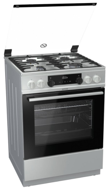 Комбинированная плита Gorenje K 634 XF рабочая поверхность из нержавеющей стали электрическая духовка, объем 67 л максимальная температура в духовке 250 °C гриль электрический механическое управление таймер газ-контроль варочной поверхности, электроподжиг традиционная очистка ШхВхГ: 60х85х60 см
