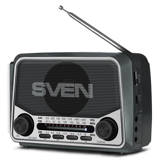 Speakers SVEN Tuner SRP-525, Grey, 3W, FM/AM/SW, USB, microSD, flashlight, battery