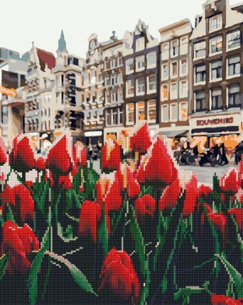 Lalele din Amsterdam Combo (set pictura pe numere + mozaic cu diamante)